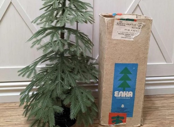 Искусственная ёлка времён СССР, в хорошем состоянии, высота 60 см, все ветки целые, есть дефекты на подставке (фото 3), сохранилась оригинальная упаковка (фото 2).